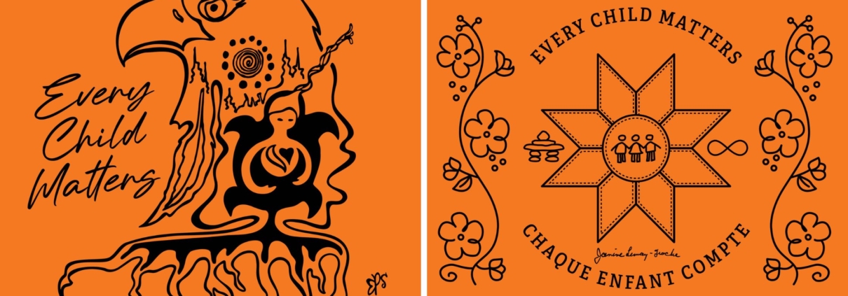 Artist, Janine Lemay-Troche reflects: “It was important for me to participate in this project to help bring awareness to what my people the Métis and other indigenous peoples, especially children, have suffered. It was a great injustice to indigenous families to have them separated from each other and to have their children sent away. I have a heart and passion for children, and it was an honour for me to work on creating a design for the ‘Every Child Matters‘ Orange Shirt Day. I want to be a part of remembering the lost children and the survivors of residential schools and help their families find healing.”