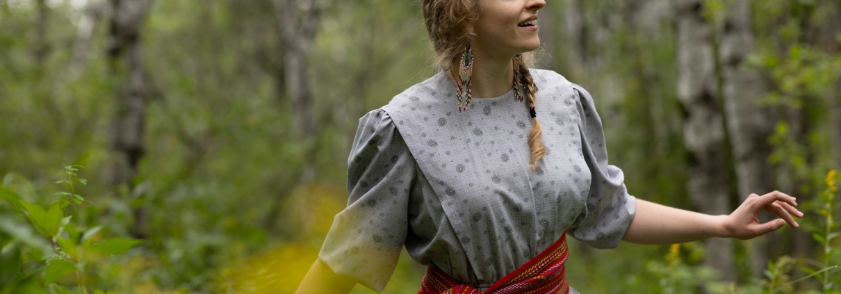 Blue Beads and Blueberries transforms an ancient fairy tale into a celebration of Métis culture. When a father asks his daughters how much they love him, he feels slighted by the response of his youngest and sends her away. This sets her off on an adventure of self-discovery, one brimming with beaded earrings, woven sashes, and traditional jigs.