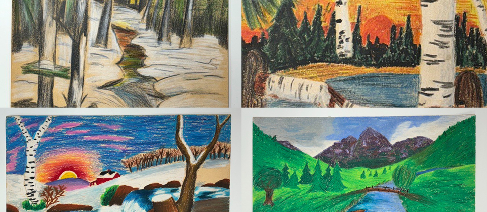 Executive Director, David Klassen says, “We’re really excited to share this exhibit, which is a wonderful mix of the old and the new. It’s called ‘Past Meets Present,’ and it celebrates the history of the Kornelsen School through art made by past students. Some of these pieces were found by a local community member who was going through old family belongings. They’re from the time when Gerald Dyck, many of us know him, was teaching art at Kornelsen School.”